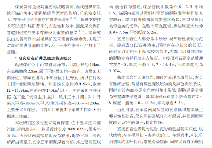 山东省赵楼煤矿掘进支护技术应用实践