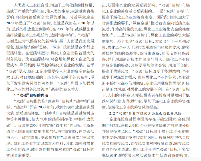 基于“双碳”视角的 煤化工企业财务风险管理探讨