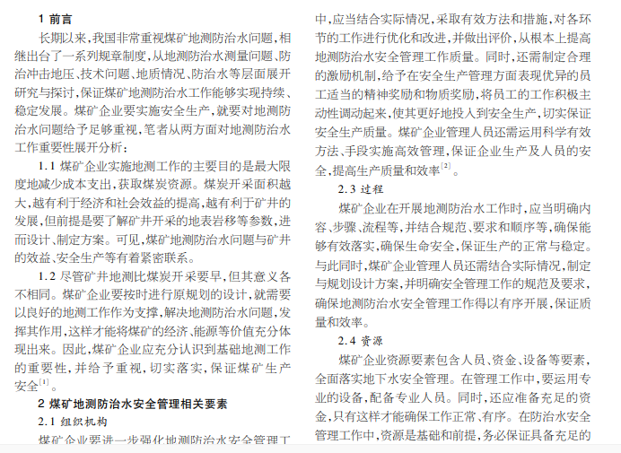 煤矿生产过程中极易受各方面因素的影响,严重时还可能带来巨大的生命和财产损失。水害问题是重要的影响 因素之一。
