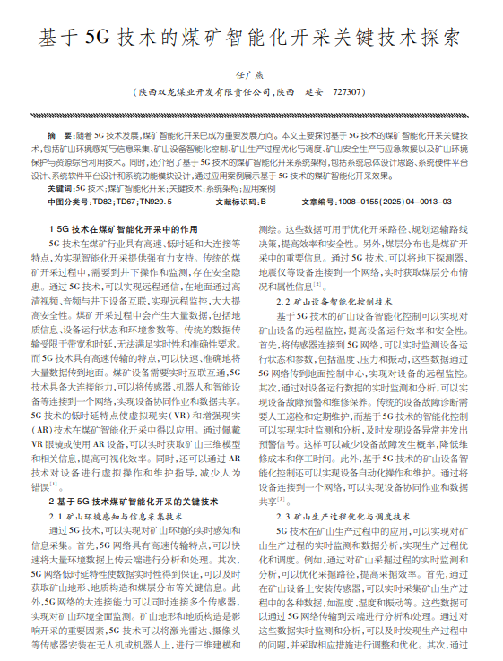 随着5G技术发展,煤矿智能化开采已成为重要发展方向。