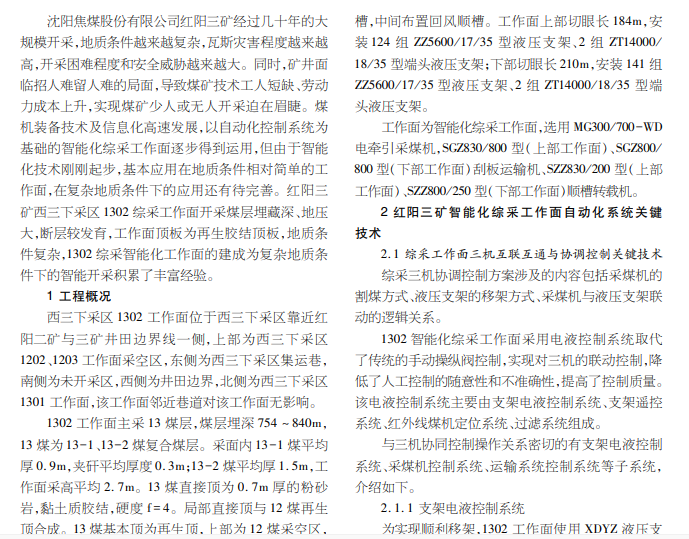 针对红阳三矿复杂的地质条件及严重瓦斯灾害威胁,矿井提出了复杂地质条件下智能化的综采工艺。