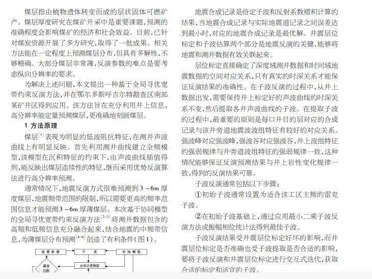 基于模型全局寻优宽带约束反演方法 在某矿井区煤层厚度预测方面的应用