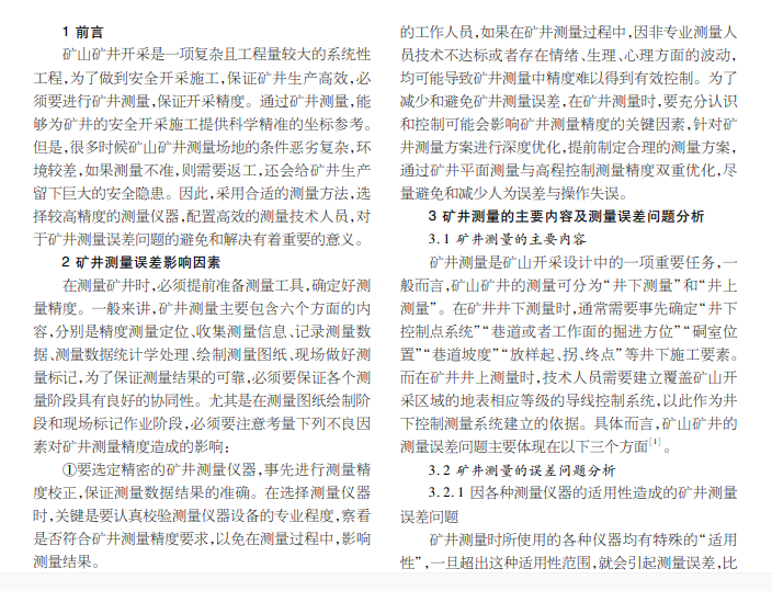 本文主要通过分析常见的矿山矿井测量误差,如因各种测量仪器的适用性。