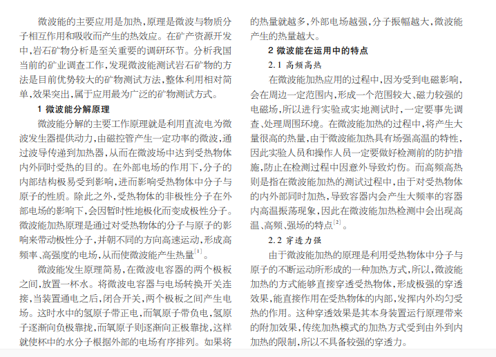 岩石矿物测试中微波能的运用