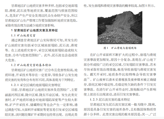 本文结合甘肃地区矿山地质灾害状况,阐述了矿山地质灾害危害特征,分析了矿山地质灾害危害方式。