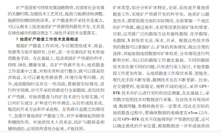 地质矿产勘查及绿色开采技术创新思考