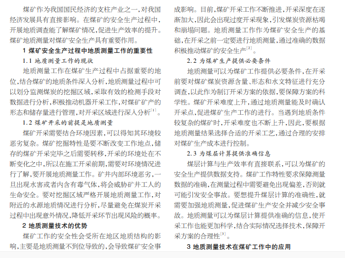 地质测量技术在煤矿工作中的应用研究