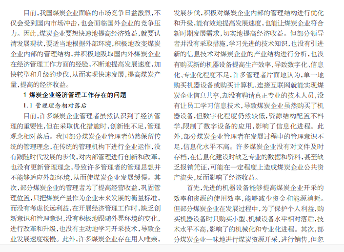 煤炭企业在发展的过程中,面临日益变化的市场环境,要想在激烈的竞争中获取更高的经济收益。