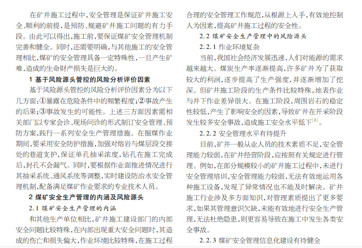 风险源头管控;煤矿安全管理