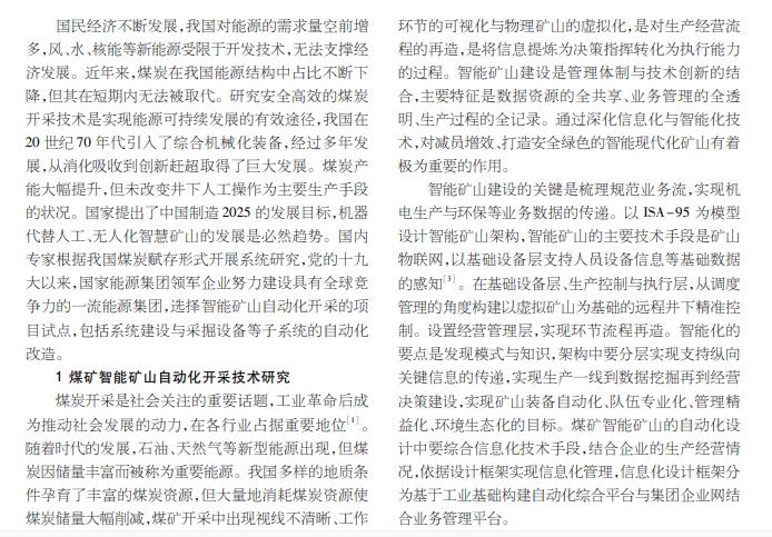 煤矿智能矿山自动化开采技术与应用