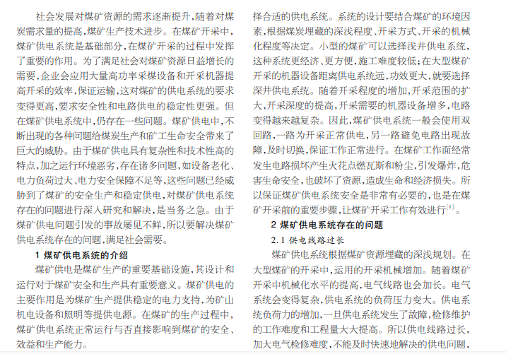浅谈煤矿供电系统存在的问题及解决方法