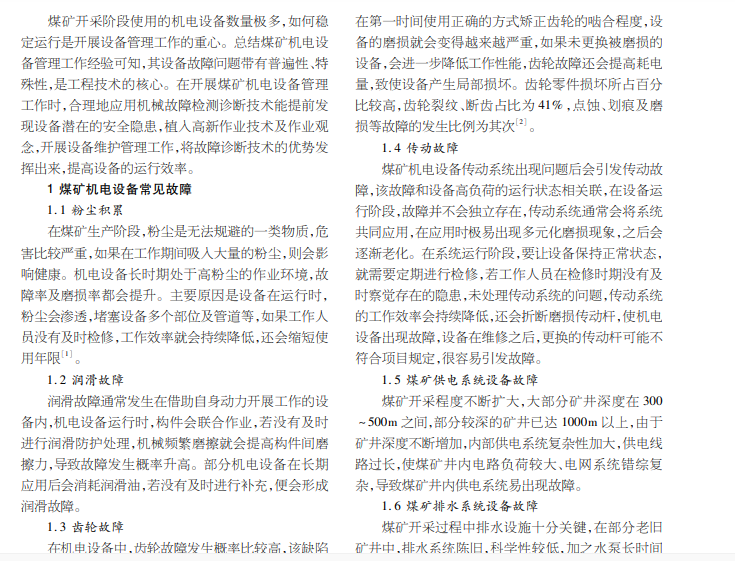 煤矿机电设备管理中 机械故障检测诊断技术的应用