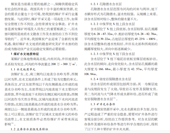 煤矿水文地质特征 与矿井水害防治技术质量分析