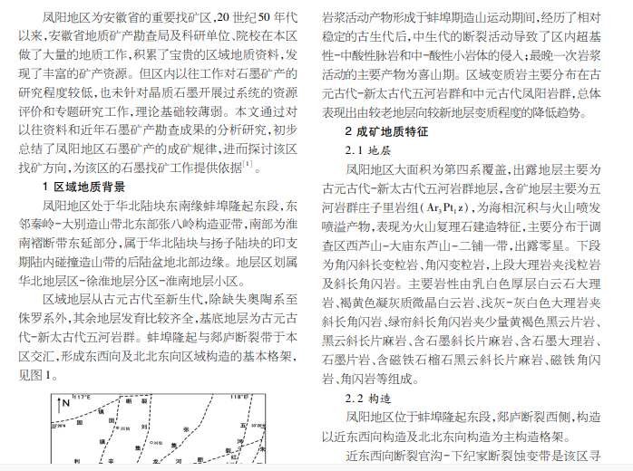 凤阳地区石墨矿成矿地质特征及找矿方向