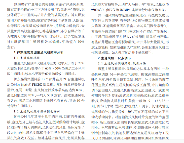 合理选型是主通风机高效运行的前提,合理调节运行工况是主通风机高效运行的保障。