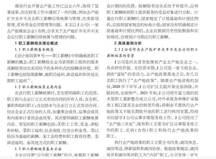 去产能关井不关企 应付职工薪酬后续核算与管理问题探讨——以J公司为例