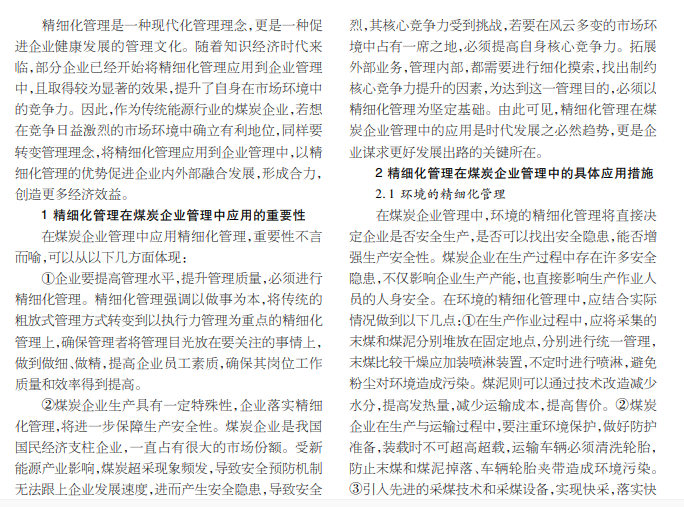 精细化管理;煤炭企业