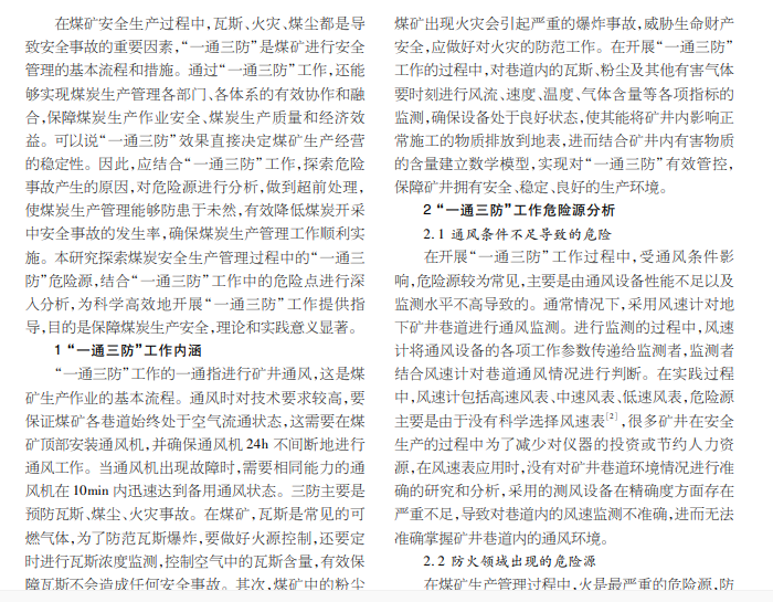 煤矿“一通三防”工作中的危险源分析 及预控探析