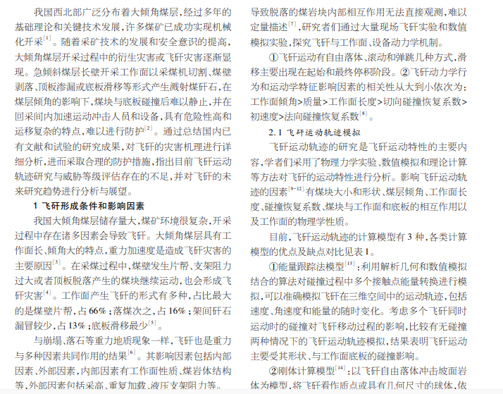 与工程实际相结合,解决亟待解决的科学问题和技术难题,最后对大倾角煤层飞矸灾害防治技术的未来发展方向进行展望。