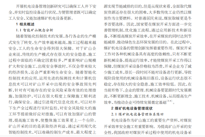 基于智能矿山的煤矿机电设备管理创新研究