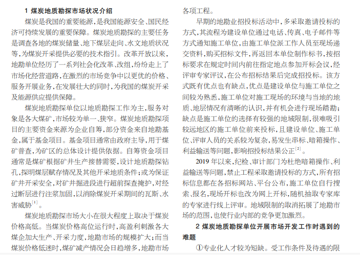 关于煤炭地质勘探单位市场开发工作的思考