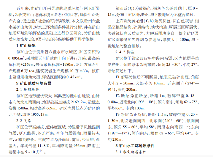 某矿山水工环地质条件分析及地质环境评估