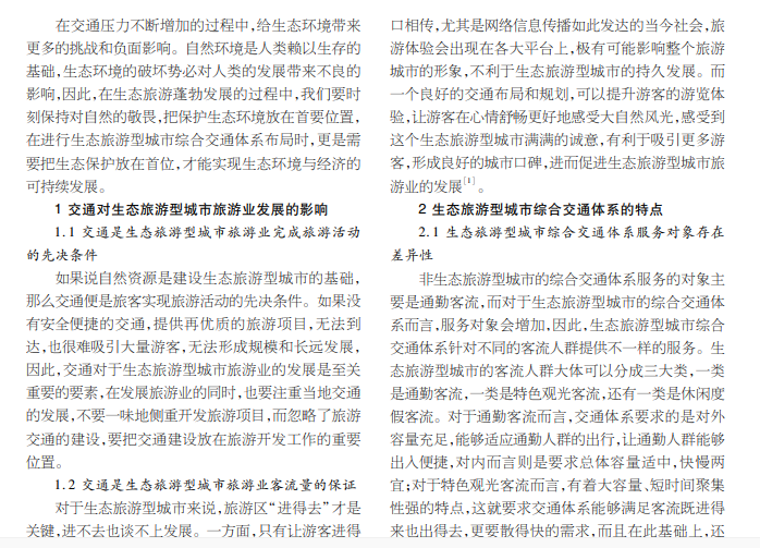 关于生态旅游型城市综合交通体系探讨