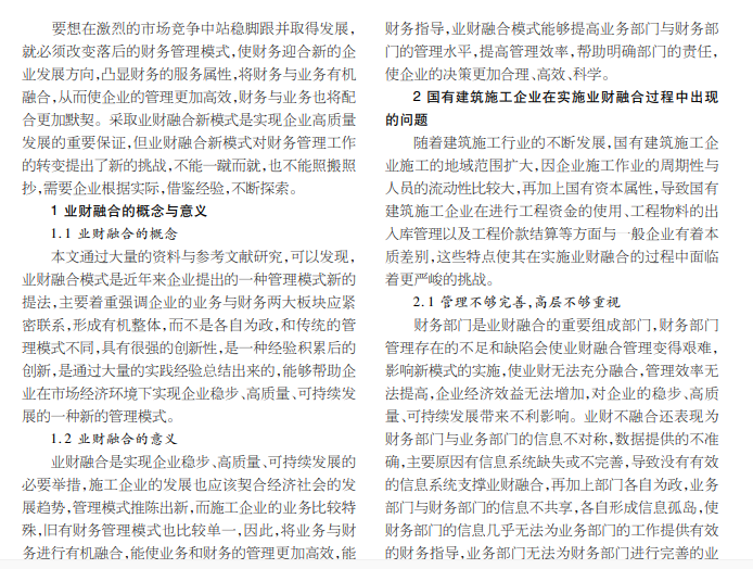 本文从国有建筑施工企业实施业财融合角度出发,剖析企业实施业财融合遇到的问题。