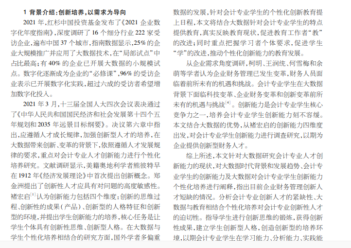 大数据背景下会计专业学生创新能力调查研究