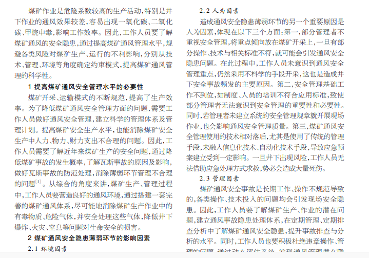 煤矿通风安全隐患薄弱环节管理解析