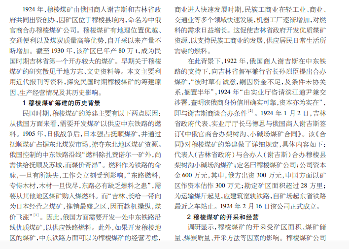 民国时期穆棱煤矿筹建始末