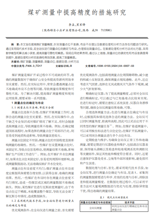 本文旨在提高煤矿测量精度,针对测量点位不准确,布设不合理以及数据处理和分析方法存在问题进行研究。
