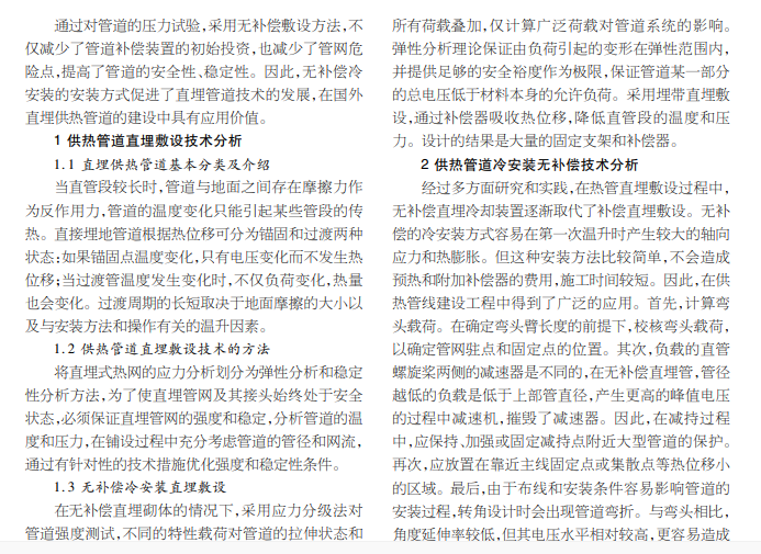 城市供热管网直接无补偿冷安装技术具有简单,效率高,成本低等优点。