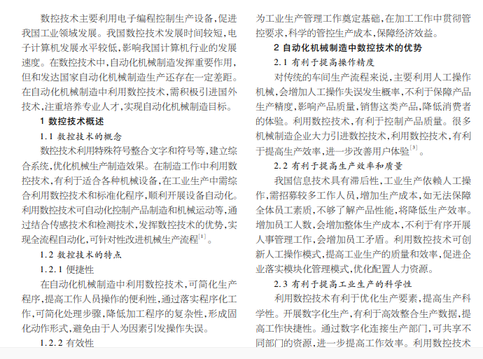自动化机械制造中数控技术的运用探讨