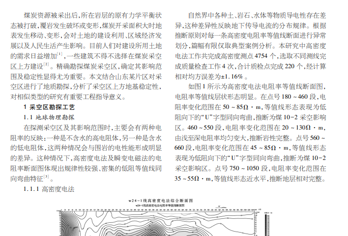 通过高密度电法,瞬变电磁法,钻探及井下电视等,勘探山东某片区采空区。
