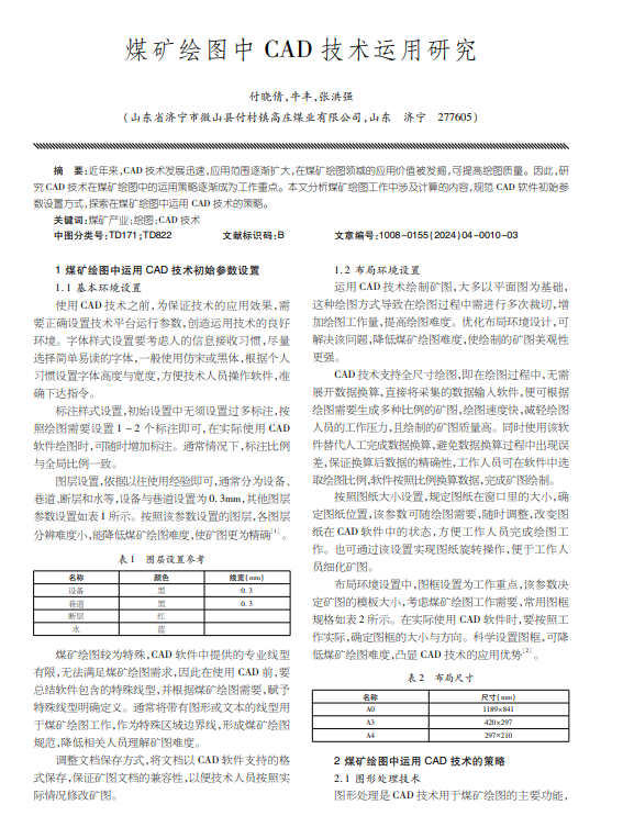 近年来,CAD技术发展迅速,应用范围逐渐扩大,在煤矿绘图领域的应用价值被发掘,可提高绘图质量。