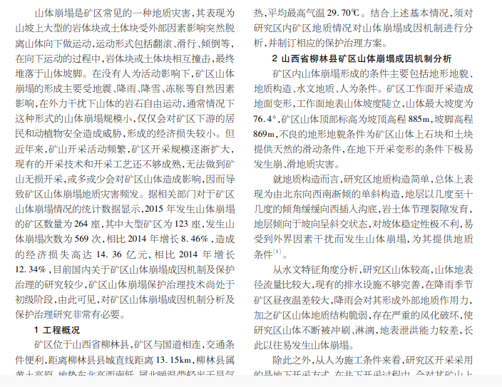 山西省柳林县矿区山体崩塌成因机制分析 及保护治理