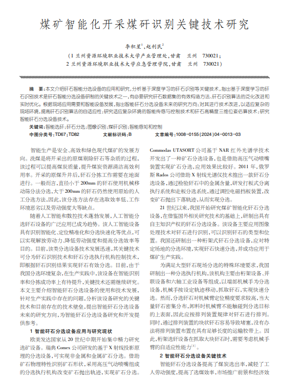 本文介绍矸石智能分选设备的应用和研究,分析基于深度学习的矸石识别等关键技术,指出基于深度学习的矸石识别技术是矸石智能分选设备研制的关键技术之一,有必要研究矸石数据集的有效构造方法、矸石识别算法的泛化改进和实时优化。