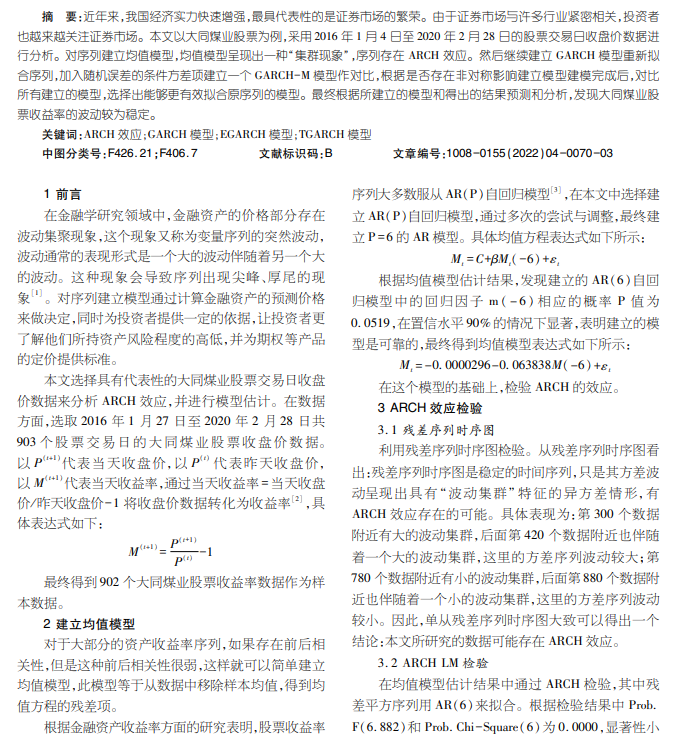 对大同煤业股票均值数据进行分析——基于LkKX效应与模型估计