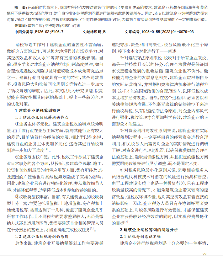 新时期下建筑企业纳税筹划问题与对策研究