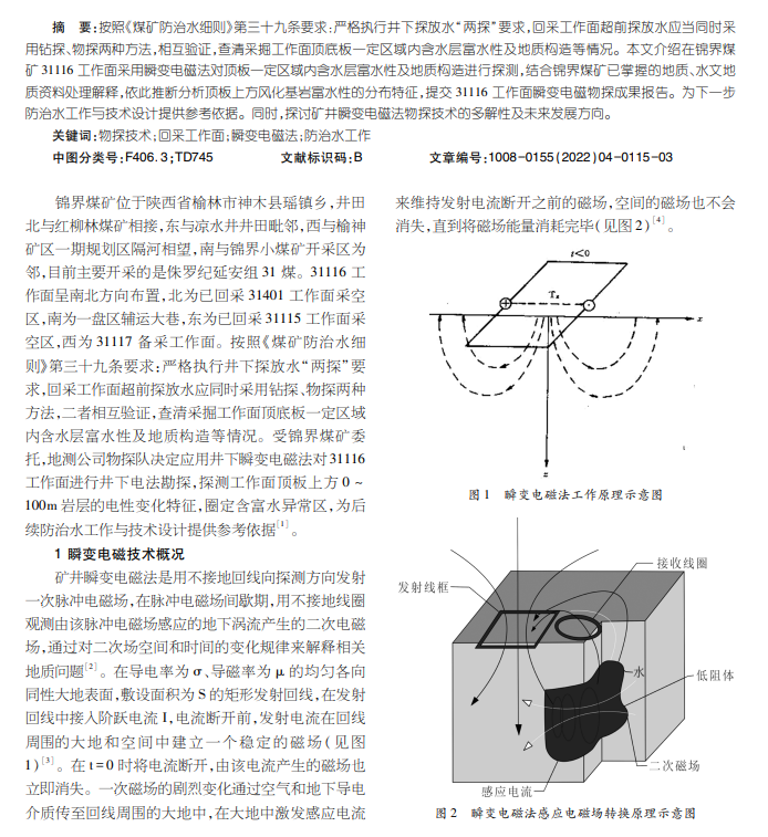 瞬变电磁法 在锦界煤矿探测工作面顶板富水性的应用