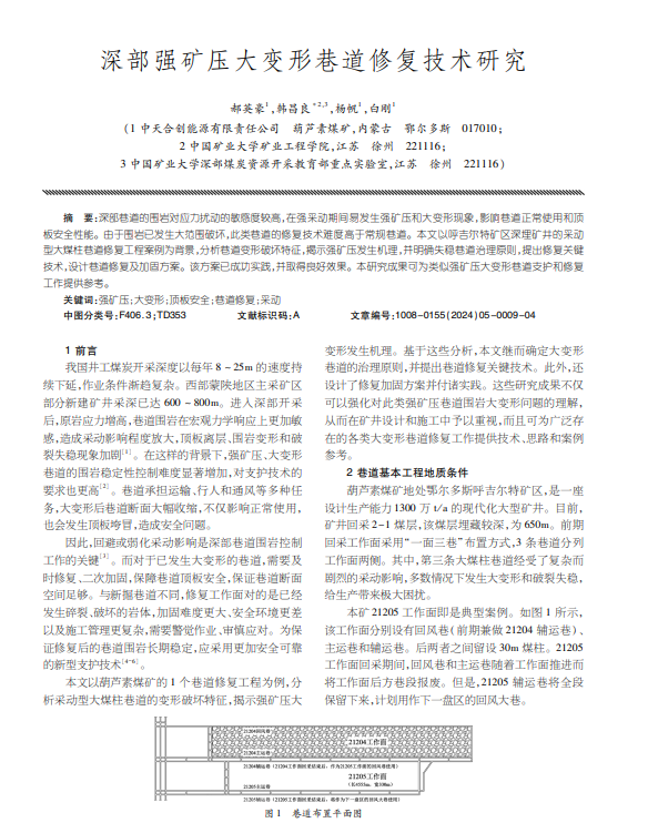 深部强矿压大变形巷道修复技术研究