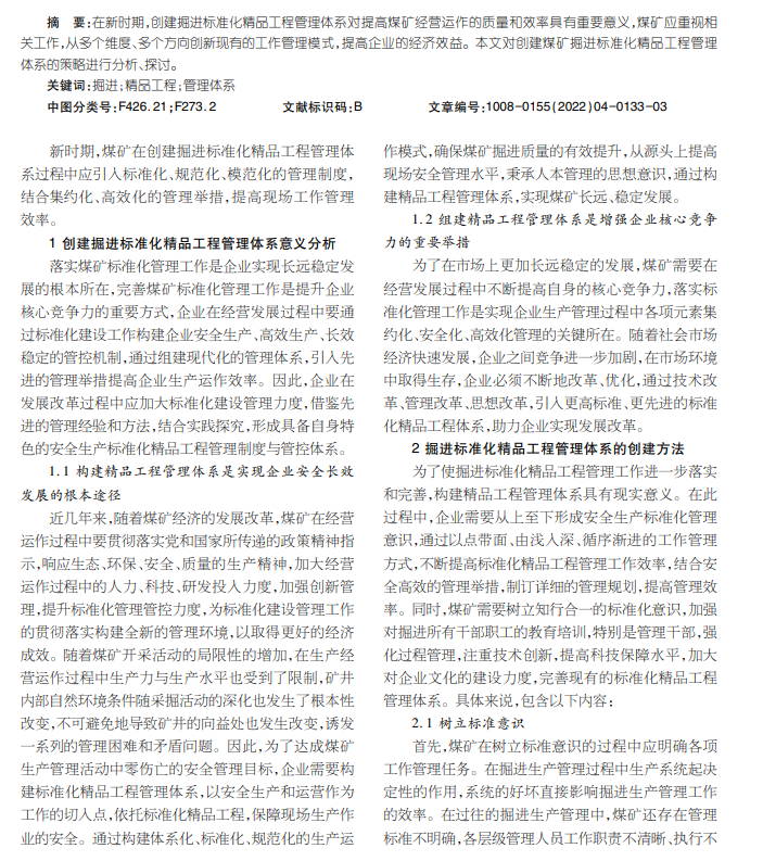 掘进;精品工程;管理体系