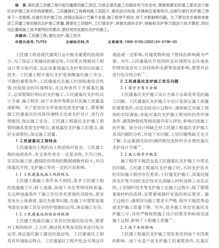 工民建工程中的基坑支护施工技术探讨
