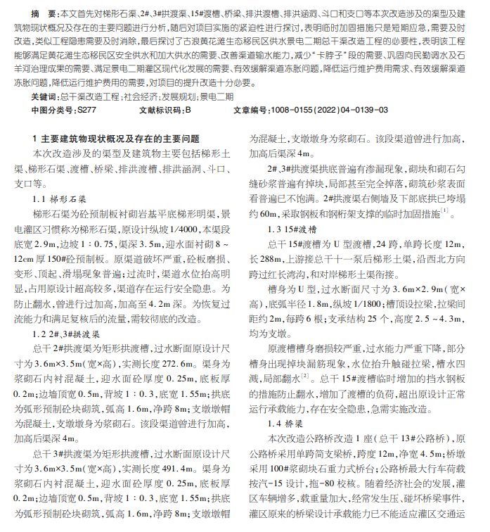 古浪黄花滩移民区 供水景电二期总干渠改造工程必要性探讨