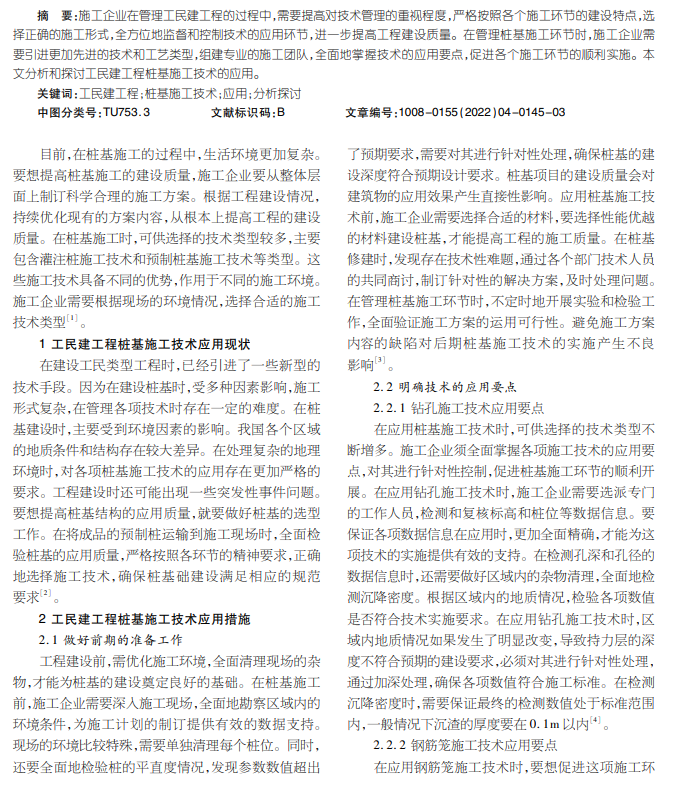 工民建工程桩基施工技术应用分析