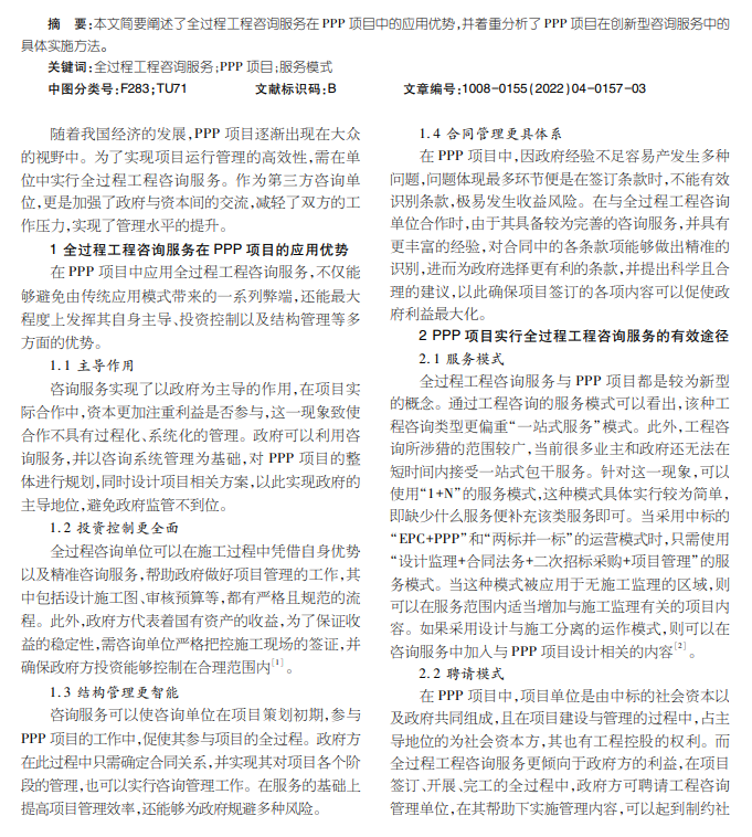 全过程工程咨询服务 在PPP项目管理中的应用分析