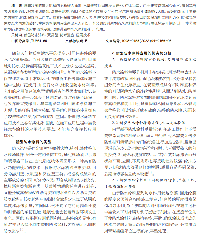 新型防水涂料应用技术探析