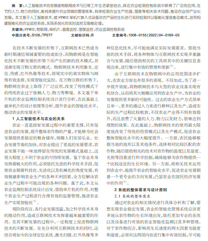 基于单片机的农业监测控制系统设计研究