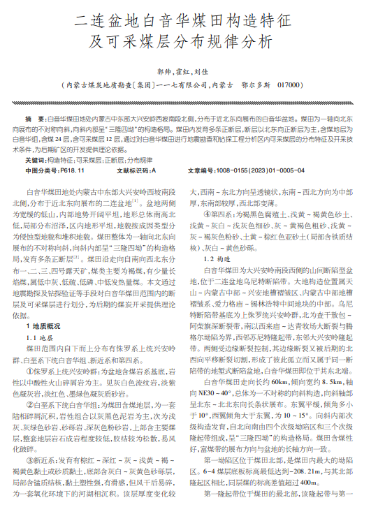 二连盆地白音华煤田构造特征 及可采煤层分布规律分析